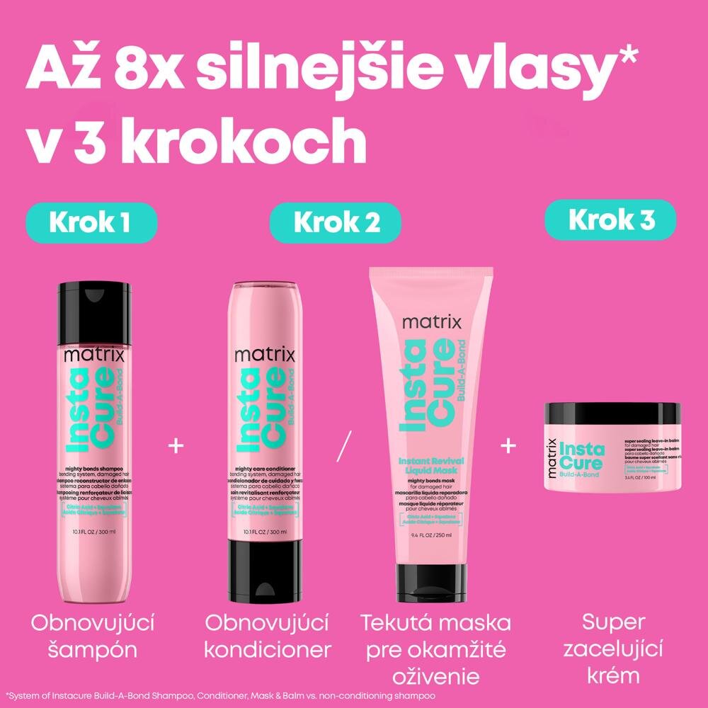 *Când se utilizează împreună cu șamponul, balsamul, masca și crema Instacure Build-A-Bond, comparativ cu utilizarea fără șampon și balsam