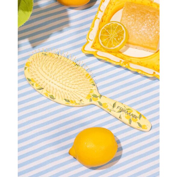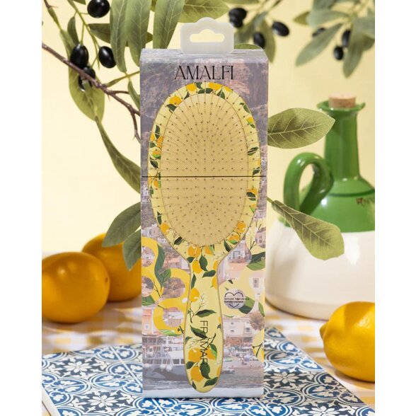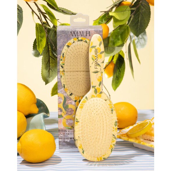 Descoperiți unitatea de prospețime și confort – vă prezentăm Framar Amalfi, o perie de păr exclusivă concepută pentru pieptănatul zilnic fără durere, cu parfumul verii și atmosfera litoralului Amalfi. Acest accesoriu elegant pentru setul de înfrumusețare este ideal pentru toate tipurile de păr și este potrivit chiar și pentru părul prelungit și peruci.