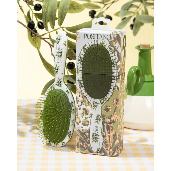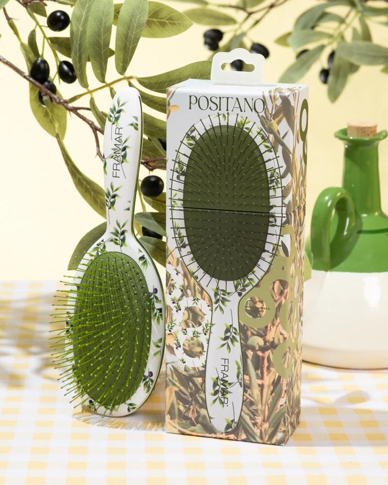 Descoperiți frumusețea și confortul în același timp – vă prezentăm Framar Positano, o perie de păr exclusivă concepută pentru pieptănatul zilnic fără durere, cu un pic de farmec italian. Acest accesoriu elegant pentru geanta de frumusete este ideal pentru toate tipurile de păr și este potrivit pentru părul prelungit și peruci.