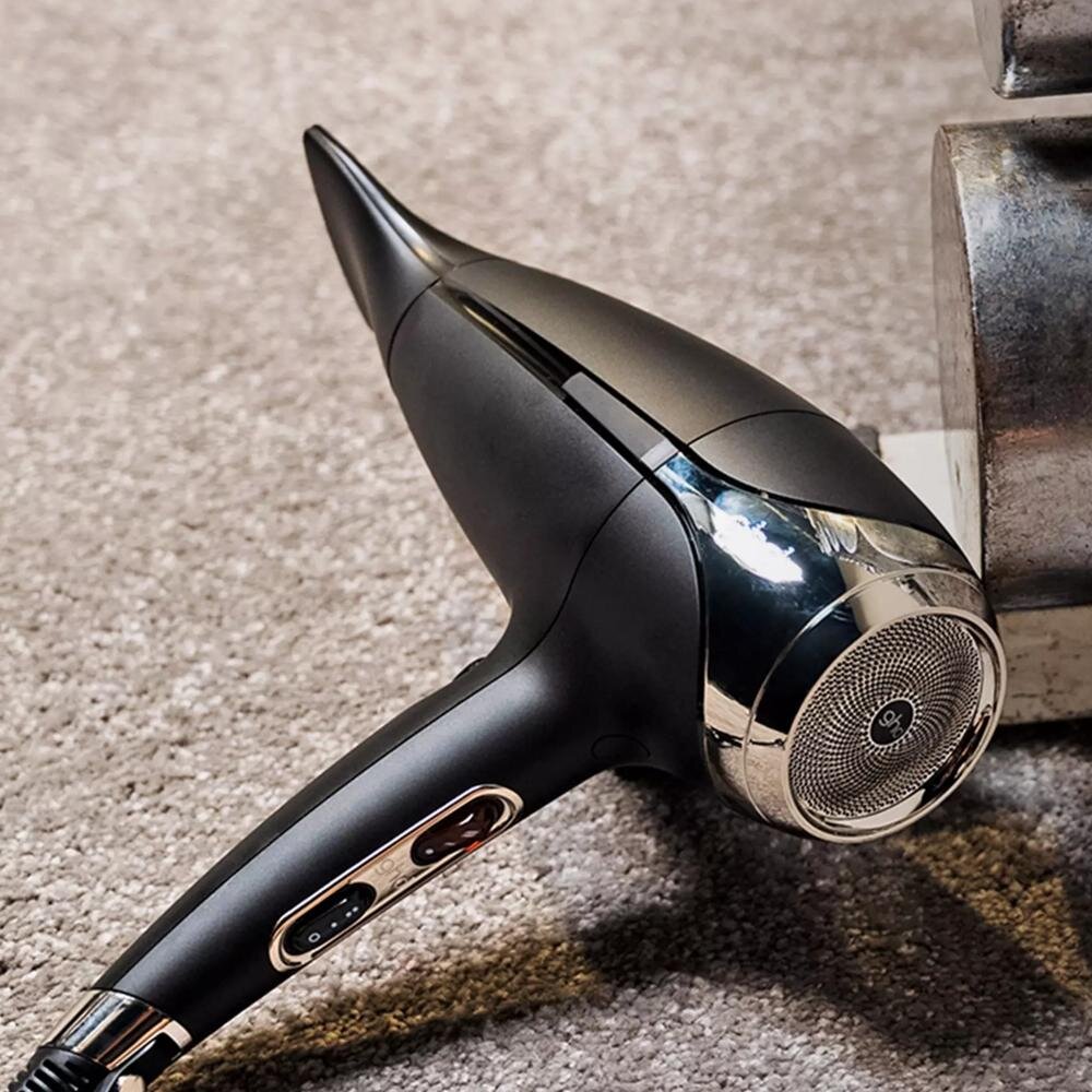 Uscătorul de păr profesional GHD oferă mai multe niveluri de temperatură și viteză a fluxului de aer, datorită cărora se adaptează perfect la diferite tipuri de păr - de la fin și sensibil până la puternic și creț. Există, de asemenea, un buton de aer rece, care este folosit pentru fixarea finală a coafurii și prelungirea rezistenței sale.