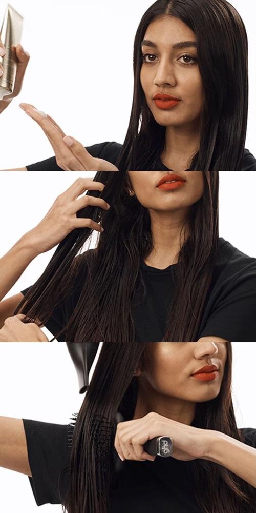 După spălarea părului, aplicați o cantitate mică de produs pe lungimi și pe vârfuri. Concentrați-vă în special pe locurile unde vârfurile despicate sunt cele mai vizibile. Pieptănați ușor părul pentru a distribui uniform tratamentul capilar. Uscați părul feon de păr sau modificați cu ajutorul stylingului termic – căldura activează efectul regenerator al tratamentului. Produsul nu trebuie clătit, iar efectul său se acumulează la utilizarea regulată.