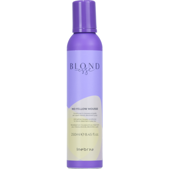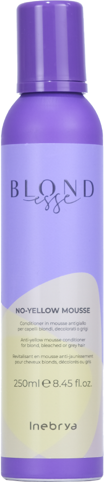 No-Yellow Mousse este o spumă care nu se spală, care pieptănă și hrănește părul fără a-l împovăra și neutralizează apariția nuanțelor gălbui.