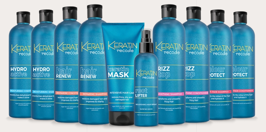 Prekódujte si vlasy! Je čas na lesklé, vitálne a hodvábne hladké vlasy. Keratin Recode je prémiová vlasová kúra s vegánskym keratínom, ktorá preukázateľne zlepšuje a posilňuje keratínové väzby vo vlasovej štruktúre a premieňa vlasy na lesklejšie a hladšie. Produkty Keratin Recode obsahujú starostlivo vybrané aktívne zložky, aby vyhovovali individuálnym potrebám náročných vlasov. Výsledok vlasovej starostlivosti s produktmi Keratin Recode je teda vždy rovnaký, bez ohľadu na počiatočný stav vlasov – vitálnejšie, lesklejšie a vyživené vlasy.