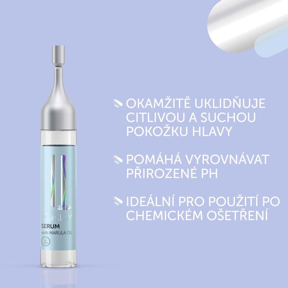 Calmează imediat scalpul uscat, iritat sau cu mâncărime. Hidratează și ameliorează tensiunea de la prima aplicare. Formula bogată în pantenol, betaină și ulei de marula restabilește pH-ul natural al pielii și îl menține echilibrat.