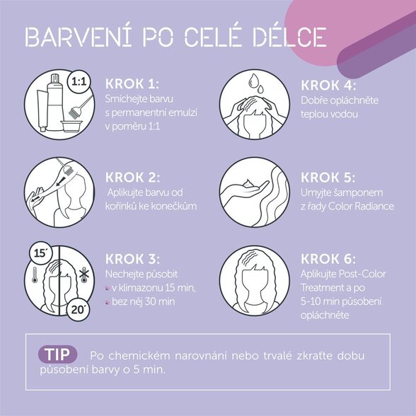 Tratamentul părului - După aplicarea vopselei permanente de păr Londa Professional: Clătiți vopseaua de pe păr. Aplicați pe părul dumneavoastră Color Radiance sampon Aplicați un tratament de 5 minute pentru a neutraliza și stabiliza pigmenții de culoare, apoi clătiți părul Color Radiance Post Color Treatment.
