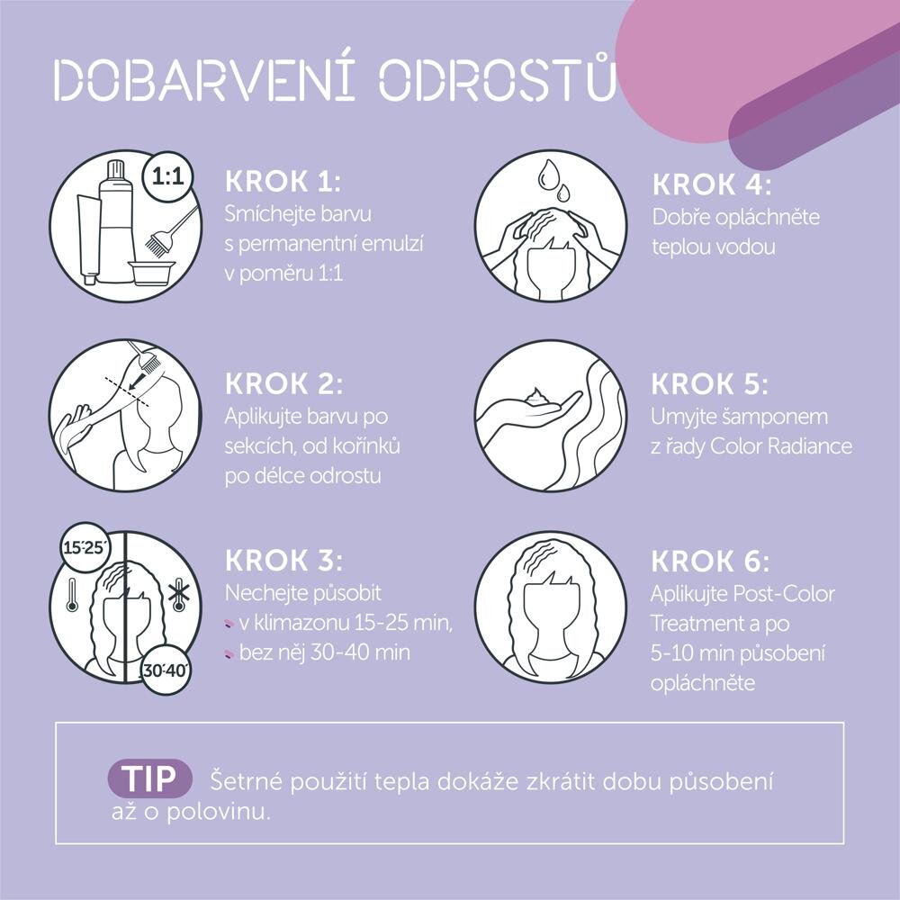 Tratamentul părului - După aplicarea vopselei permanente de păr Londa Professional: Clătiți vopseaua de pe păr. Aplicați pe părul dumneavoastră Color Radiance sampon Aplicați un tratament de 5 minute pentru a neutraliza și stabiliza pigmenții de culoare, apoi clătiți părul Color Radiance Post Color Treatment.
