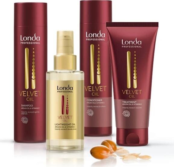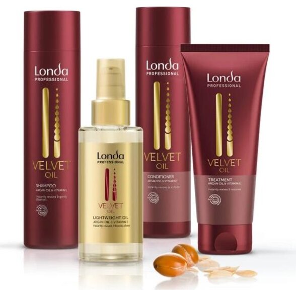 Despre gama: Gama de produse premium Londa Professional pentru revitalizarea, hidratarea și strălucirea părului. Gama Velvet Oil este potrivită atât pentru părul vopsit, cât și pentru părul natural. Formula cu ulei de argan și vitamina E, care hrănește părul și îl protejează de deteriorarea UV, care accelerează îmbătrânirea și slăbirea părului.