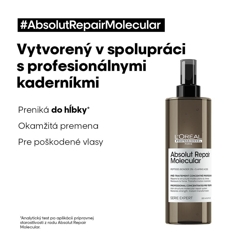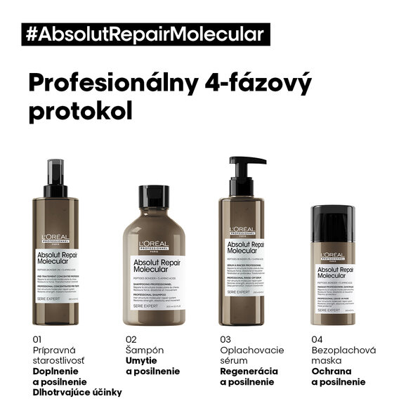 - Acestea pătrund în firul de păr pentru a reconstrui și a repara structura moleculară a părului**. Cu Absolut Repair Molecular, puteți regenera părul grav deteriorat și puteți reda părului rezistența și elasticitatea inițială**, cu o singură utilizare.