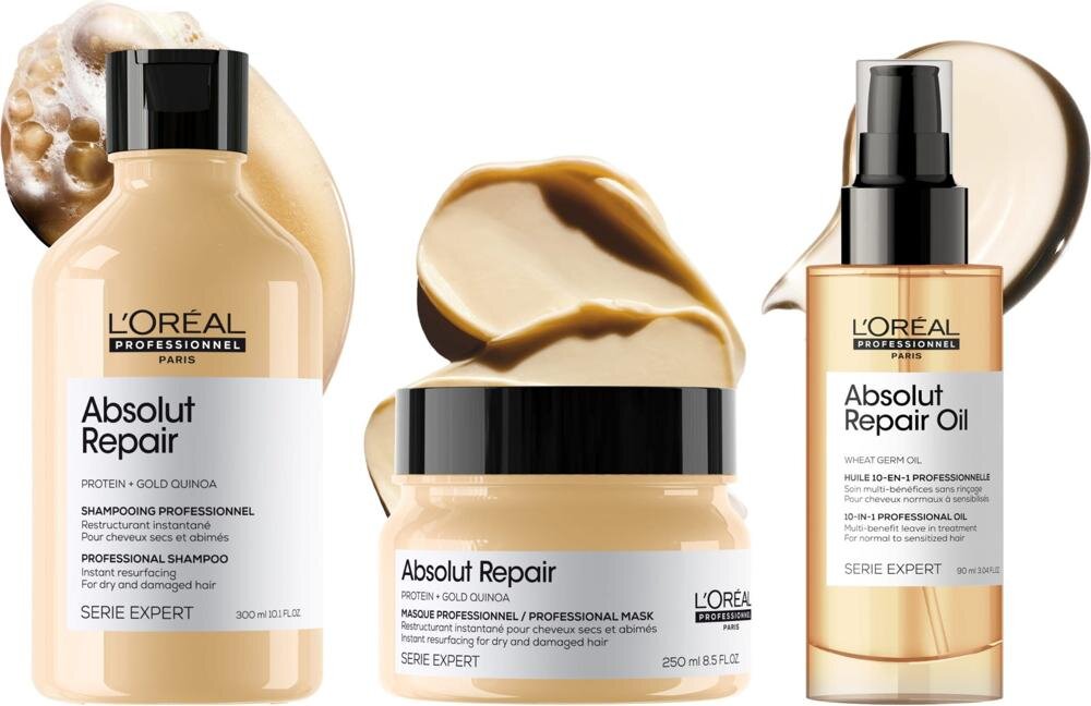 Îngrijire de lux pentru părul deteriorat și cadoul perfect pentru o femeie - setul cadou L'Oréal Professionnel Absolut Repair Trio pentru păr deterior atăt pentru păr ca pentru păr uscat