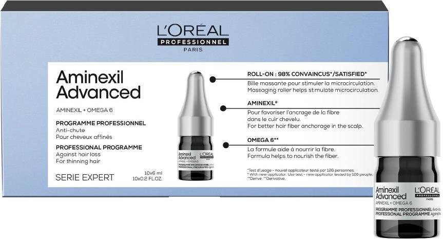 Aminexil Advanced de la L'Oréal Professionnel este o soluție cu adevărat excepțională pentru femeile și bărbații care caută un tratament profesional eficient. Oferă rezultate vizibile începând cu a 6-a săptămână, reducând pierderea părului și îmbunătățind semnificativ densitatea părului. Aminexili, un complex de nutrienți de susținere și o aplicare plăcută fac din acesta alegerea ideală pentru produsele împotriva căderii părului, care vizează în mod eficient și cuprinzător cauzele căderie părului.