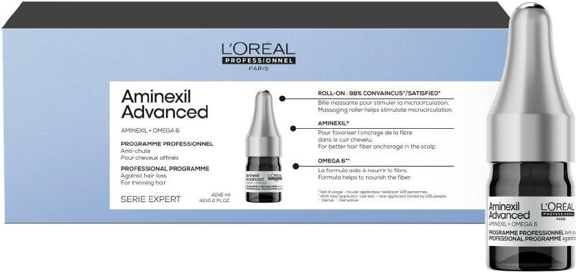 Aminexil Advanced de la L'Oréal Professionnel este o soluție cu adevărat excepțională pentru femeile și bărbații care caută un tratament profesional eficient. Oferă rezultate vizibile începând cu a 6-a săptămână, reducând pierderea părului și îmbunătățind semnificativ densitatea părului. Aminexili, un complex de nutrienți de susținere și o aplicare plăcută fac din acesta alegerea ideală pentru produsele împotriva căderii părului, care vizează în mod eficient și cuprinzător cauzele căderie părului.