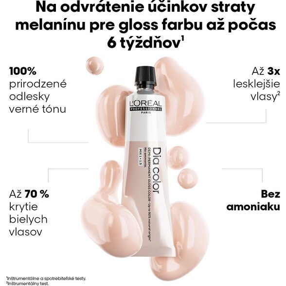 - Alegeți un Dia developer adecvat în funcție de acoperirea dorită a părului alb pe care clientul o dorește: 9 vol. sau 15 vol. pentru o acoperire optimă.