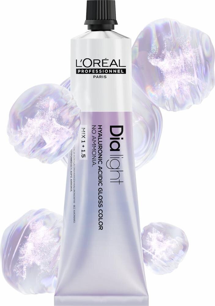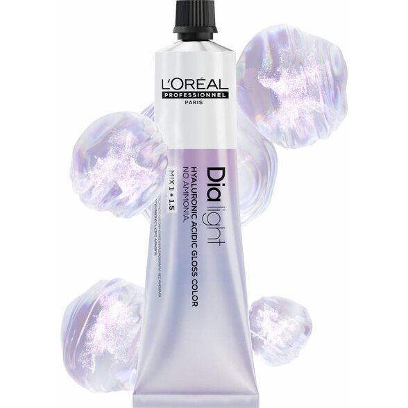 L’Oréal Professionnel DiaLight vopsea de păr - în ambalaj nou de 60 ml este vopsea de tonare profesională de top pentru păr, concepută pentru saloanele de coafură care lucrează cu tehnici moderne de colorare și pun accent pe precizie maximă, puritatea tonului și strălucire ridicată a părului. Această L’Oréal farba na vlasy este destinată pentru tonarea delicată, dar extrem de eficientă a părului fără decolorare și fără încărcarea inutilă a fibrei capilare.