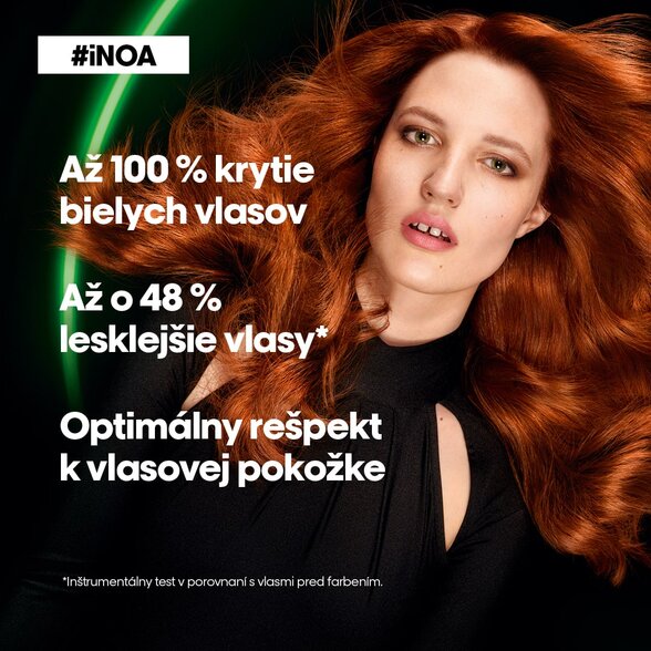 Această concentrație unică ridicată de ulei acționează nu numai ca un catalizator pentru depunerea pigmenților în interiorul părului, ci creează și o culoare cu aspect sănătos, cu un rezultat lucios și radiant, care se potrivește tonului. Vopselele iNOA oferă un respect optim scalpului pe tot parcursul serviciului, sunt fără miros nedorit și oferă până la 100% acoperire a părului alb. Părul arată mai bine și este cu până la 48%* mai strălucitor.