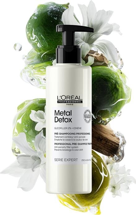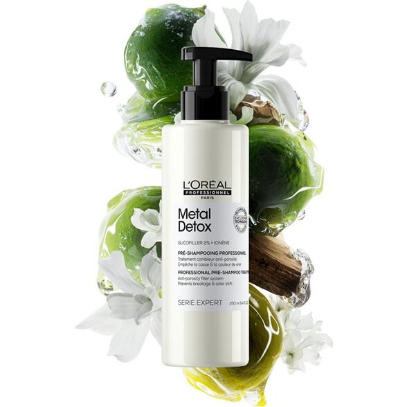 APLICAȚIE: Împărțiți părul ud în 2 secțiuni. Aplicați 2 până la 4 pulverizări din pompă pe fiecare secțiune, în funcție de lungime. Incorporați produsul în lungimi și vârfuri timp de 1 până la 2 minute, până se formează o spumă fină. Pieptănați. Nu clătiți. În tehnica de stratificare, aplicați șampon Metal Detox direct deasupra, apoi clătiți și apoi utilizați mască.