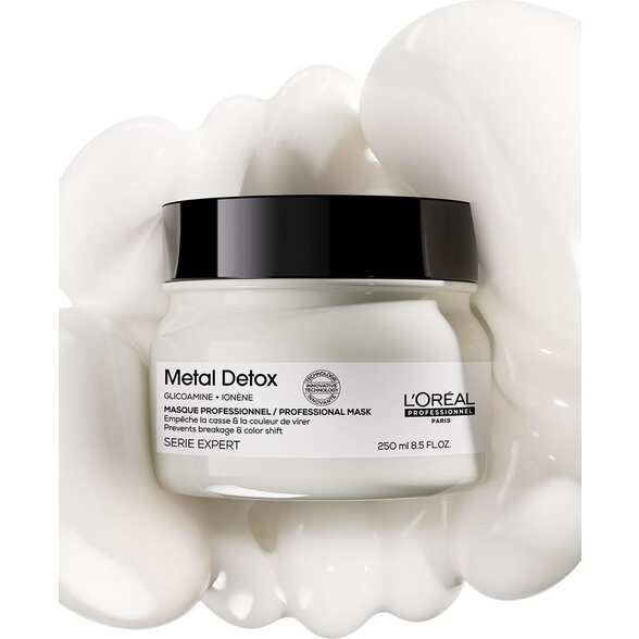 - L'Oréal Professionnel Metal Detox mască de hrănire profundă pentru păr vopsit și deteriorat 250 ml -Pătrunde în profunzimea firului de păr, întărind structura acestuia și ajutând la prevenirea ruperii, revitalizând culoarea părului și făcând-o să reziste mai mult timp, fiind un pas esențial după vopsirea sau colorarea părurilor.