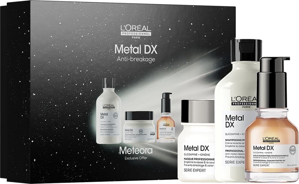 Setul cadou L'Oréal Professionnel Metal Detox Trio pentru păr vopsit și deteriorat – îngrijire, frumusețe și lux în același timp.
