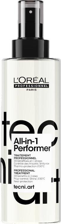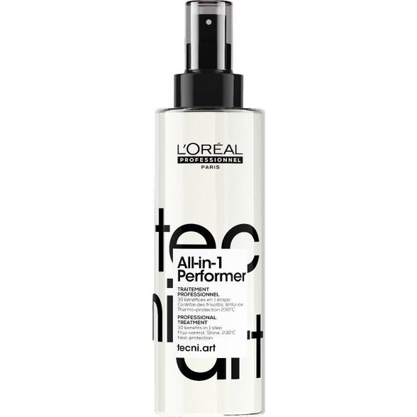 Ak hľadáte jeden produkt, ktorý v sebe spája tepelnú ochranu na vlasy, viditeľné uhladenie vlasov a účinný efekt proti krepovateniu, L’Oréal Professionnel Tecni.Art All-In-1 Performer predstavuje funkčné a spoľahlivé riešenie. Je určený pre všetkých, ktorí chcú dosiahnuť upravený, zdravý a profesionálny vzhľad vlasov s minimálnym počtom produktov, no bez kompromisov v kvalite výsledku.