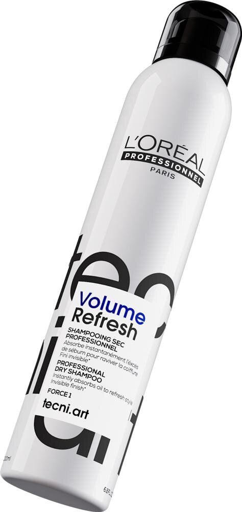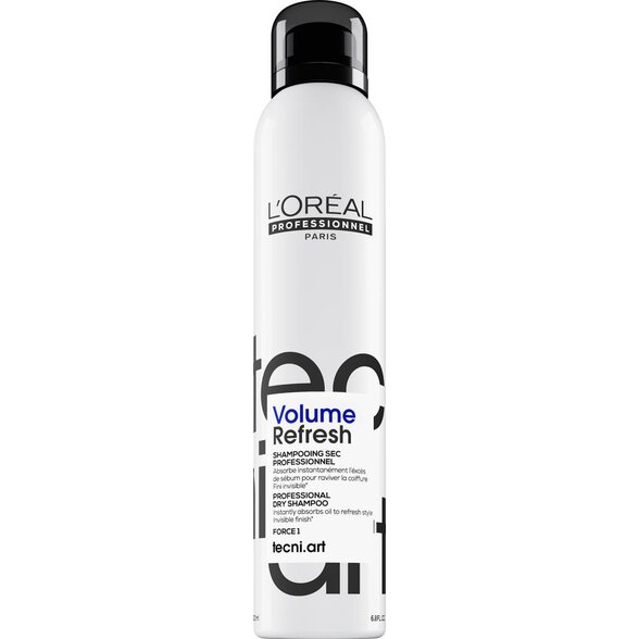 L'Oréal Professionnel Tecni.Art Volume Refresh je moderný suchý šampón na vlasy, ktorý bol vyvinutý pre rýchle osvieženie účesu bez použitia vody a bez kompromisov v kvalite vlasov. Ide o profesionálny suchý šampón v spreji, určený pre kaderníkov aj náročných zákazníkov, ktorí očakávajú okamžitý efekt, čistý vzhľad vlasov a prirodzený objem od korienkov. Vďaka svojej ľahkej, nemastnej receptúre patrí medzi produkty, ktoré sú často označované ako najlepší suchý šampón na vlasy v profesionálnej vlasovej kozmetike.