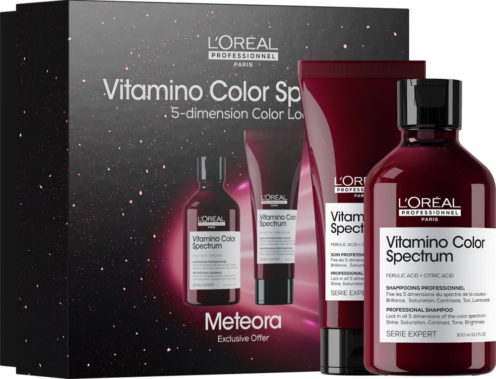 Set cadou pentru strălucirea părului vopsit - L'Oréal Professionnel Vitamino Color Spectrum Duo Pachet de Crăciun cu produse de îngrijire a părului