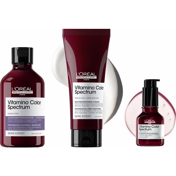 L'Oréal Professionnel Vitamino Color Spectrum este soluția perfectă pentru protecția de lungă durată și aspectul strălucitor al părului vopsit. Această îngrijire avansată este special concepută pentru vopsire, pentru a vă oferi un păr intens și strălucitor timp de până la 100 de zile. Luați-vă la revedere de la părul decolorat și mat și salutați o nuanță vibrantă și ușoară, care rămâne la fel de proaspătă ca în ziua vopsirii.