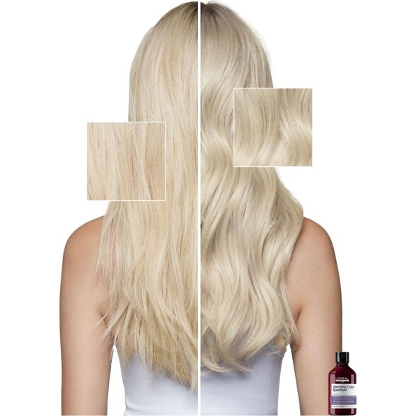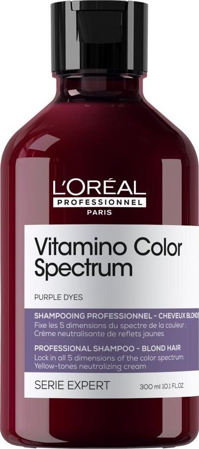 Ideal pentru părul blond, melanjat sau decolorat, L'Oréal Professionnel Serie Expert Vitamino Color Spectrum Purple Dyes Șampon pentru colorare violet elimină eficient nuanțele galbene nedorite, sporind în același timp strălucirea și intensitatea culorii, păstrând părul ca și cum tocmai a ieșit din salon.