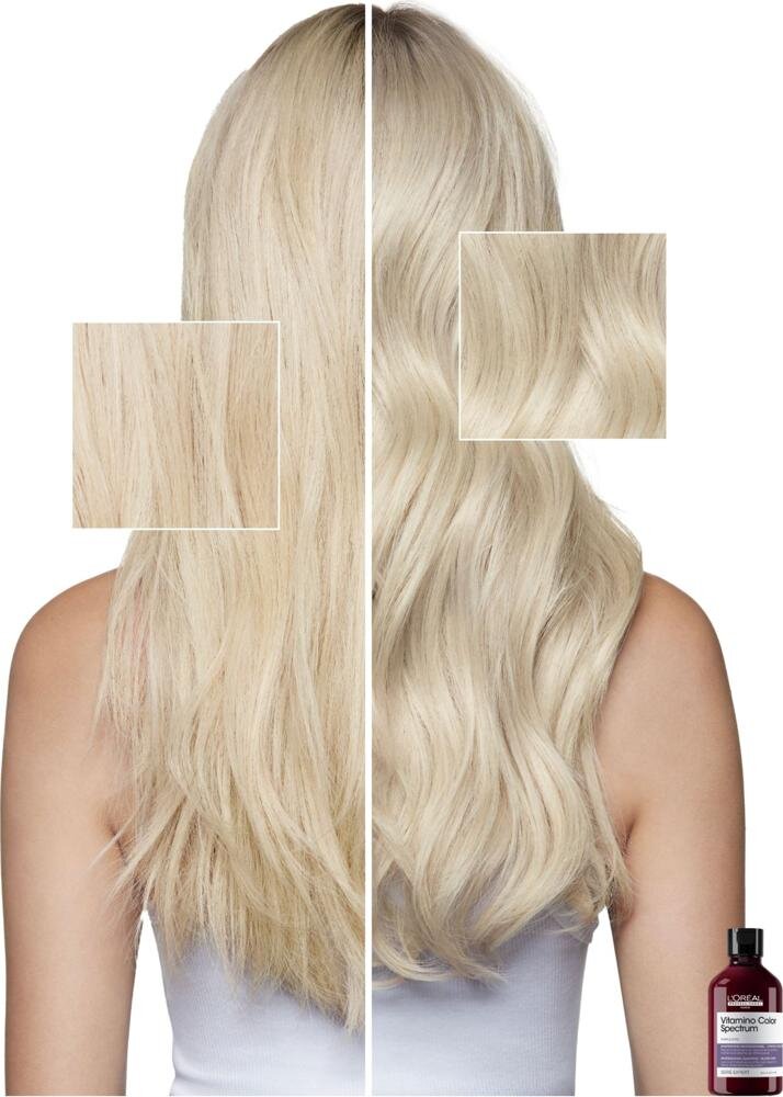 Îmbunătățește frumusețea și sănătatea părului blond cu șamponul L'Oréal Professionnel Vitamino Color Spectrum Lila – alegerea profesională pentru un blond strălucitor, vibrant și sănatatesc!