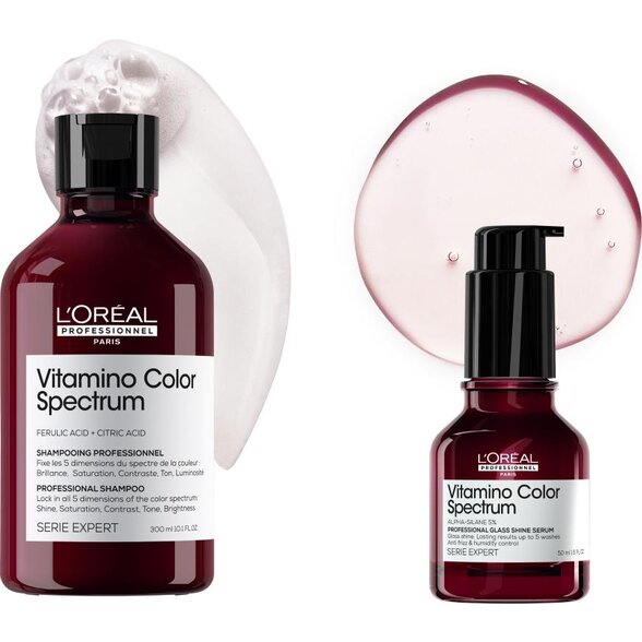 • Vitamino Color Spectrum Glass Shine Serum: Ser fără clătire, care conferă părului strălucire și netezime instantanee.
