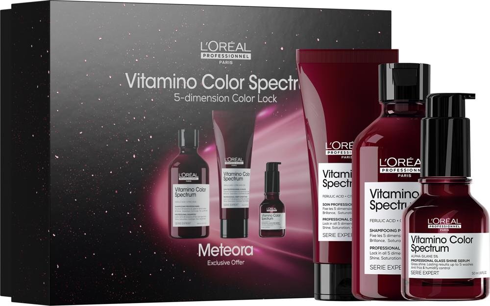Set cadou pentru strălucirea părului vopsit - L'Oréal Professionnel Vitamino Color Spectrum Trio Pachet de Crăciun cu produse de îngrijire a părului