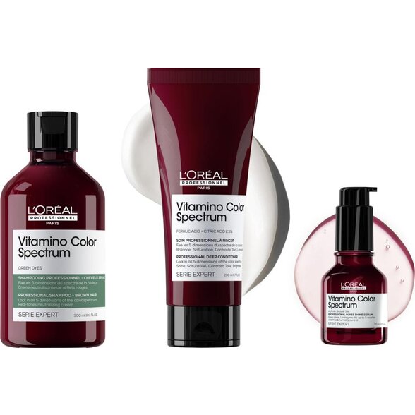 - Vitamino Color Spectrum Glass Shine Serum: Ser fără clătire, care conferă părului strălucire și netezime instantanee.