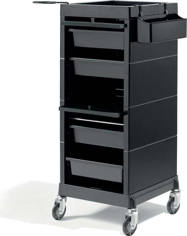 Skladujte kadernícke pomôcky v tomto praktickom manipulačnom vozíku s tichými kolieskami, ktoré nebe...