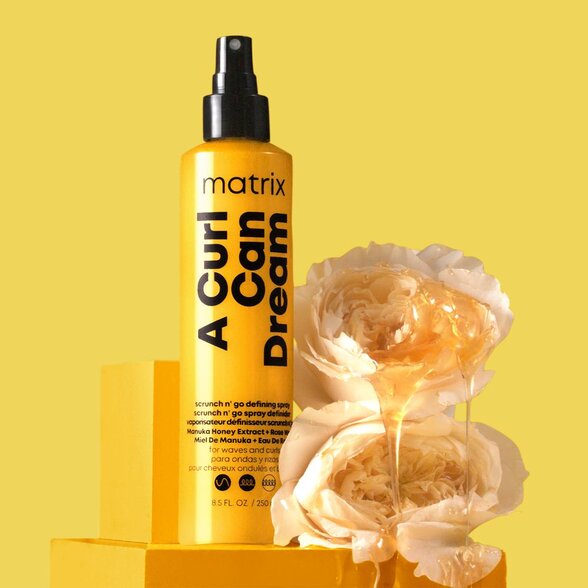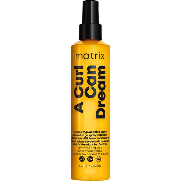 Spray pentru bucle și valuri, îmbogățit cu extract de miere de Manuka și apă de trandafiri.