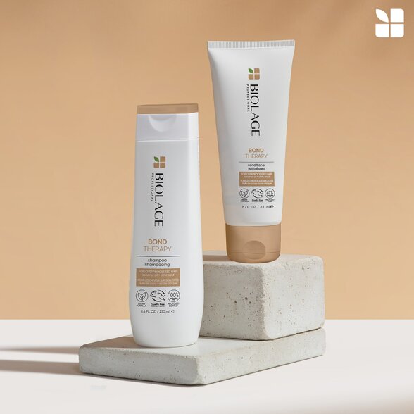 - Pentru părul mediu și gros, utilizați combinația de șampon și balsam Bond Therapy pentru a reduce de 3 ori ruperea părului și a-l face de 16 ori mai ușor de îngrijit.