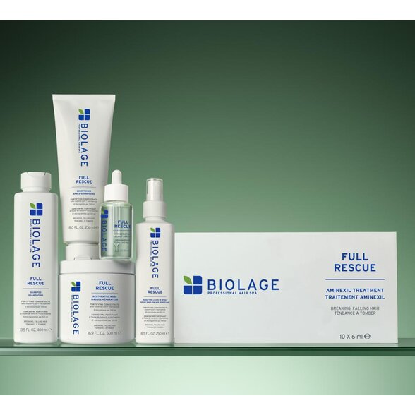 Biolage Full Rescue abordează aceste probleme prin combinarea protecției scalpului, întăririi foliculilor și regenerării fibrelor de păr.