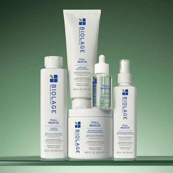 Biolage Full Rescue abordează aceste probleme prin combinarea protecției scalpului, întăririi foliculilor și regenerării fibrelor de păr.