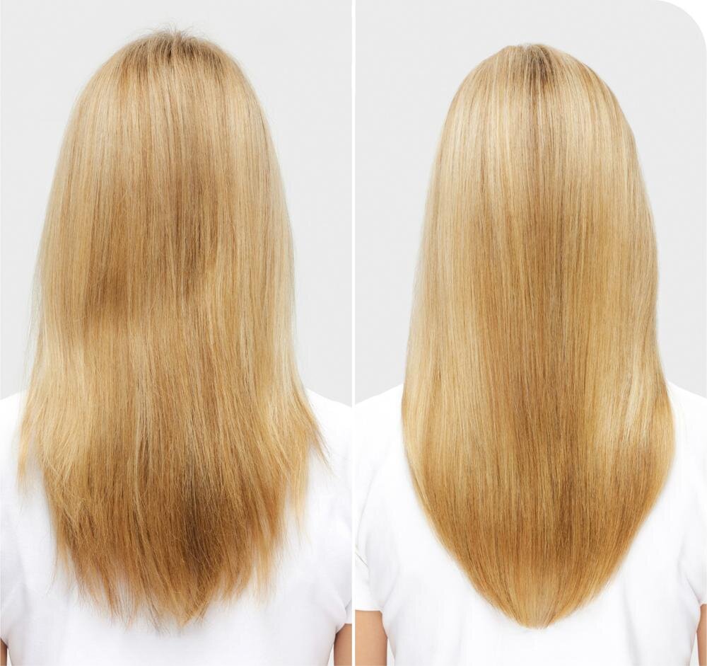 - Okamžitá regenerácia a posilnenie vlasov – vlasy sú až o 3× silnejšie a menej sa lámu.