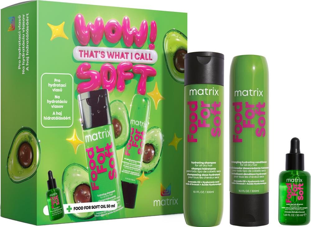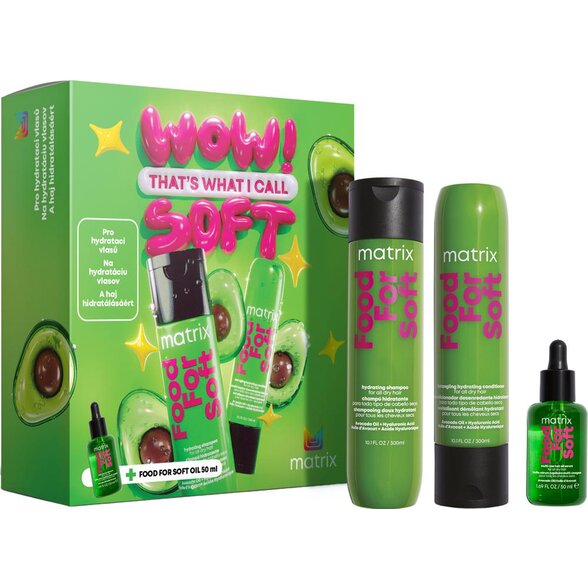 Acest set cadou cosmetic conține trei produse atent selectate din gama de produse hidratante Matrix Food For Soft, special concepute pentru a răspunde nevoilor părului uscat, fragil și decolorat. Este alegerea perfectă ca cadou de Crăciun pentru prietena ta, un cadou elegant pentru soția ta sau o modalitate originală de a câștiga simpatia femeilor din jurul tău. Cadourile pentru femei sunt adesea doar plăceri de sezon, dar acest set oferă un efect pe termen lung – păr strălucitor, moale și hidratat, plin de vitalitate.