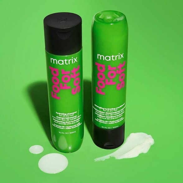 - Matrix Food For Soft sampon hidratant pentru par uscat 300 ml - Șampon delicat, dar eficient, care curăță delicat părul în timp ce îl hidratează intens. Conține ingrediente hrănitoare care ajută la restabilirea elasticității și netezimii naturale a părului. După spălare, părul este ușor, revigorat și pregătit pentru următoarea îngrijire.