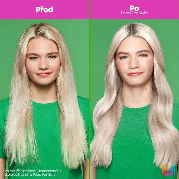 *Când este utilizat cu sistemul Food For Soft de șampon, balsam și ulei, în comparație cu șamponul obișnuit.