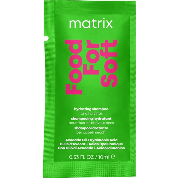 Serviciul de hidratare Food For Soft în 3 pași completează hidratarea în părul uscat și poros și previne pierderea acesteia, datorită compoziției îmbogățite cu ulei de avocado și acid hialuronic.
