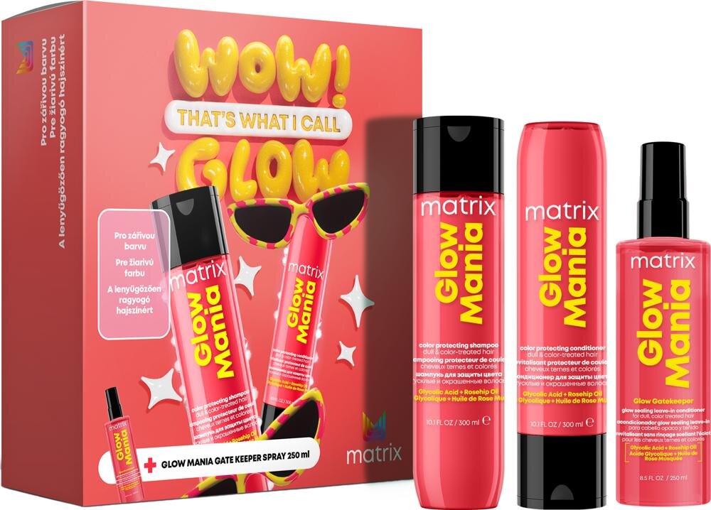 Setul cadou Matrix Glow Mania conține trei produse atent selectate din aceeași gamă profesională, care funcționează în armonie perfectă:
