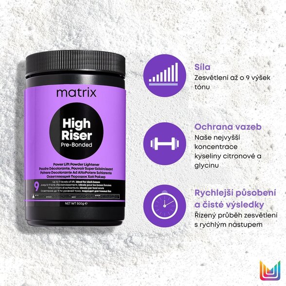 Noul High Riser Brightener vă permite să creați cel mai pur blond platină și să luminați chiar și cel mai întunecat fond de ten, reducând riscul de deteriorare. Datorită efectului pulberii, nu este nevoie să utilizați cei mai puternici oxidanți.