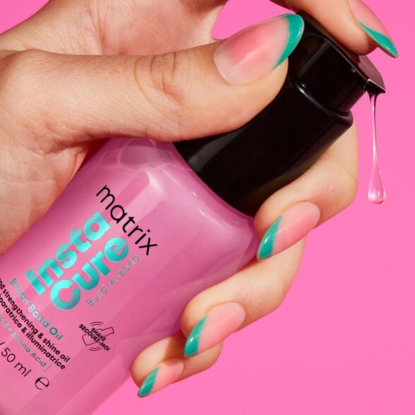 • Ochrana pred teplom a vonkajšími vplyvmi - Matrix Instacure Build-A-Bond pôsobí aj ako ochranný olej do vlasov pri stylingu. Pomáha chrániť vlasy pred teplom z fénu, kulmy či žehličky až do 230 °C a znižuje riziko ďalšieho poškodenia. Vďaka tomu je vhodný aj ako ľahký olejový zábal na vlasy pred úpravou účesu.