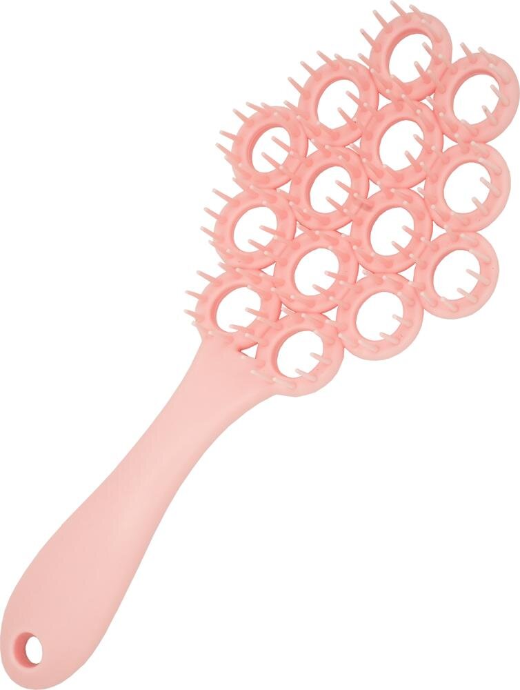 O perie de păr jucăușă, în culoarea roz, care, datorită designului cu bule, accelerează uscarea, netezește firele și conferă o strălucire de salon - Peria de păr My-She BubbleFlow Pink