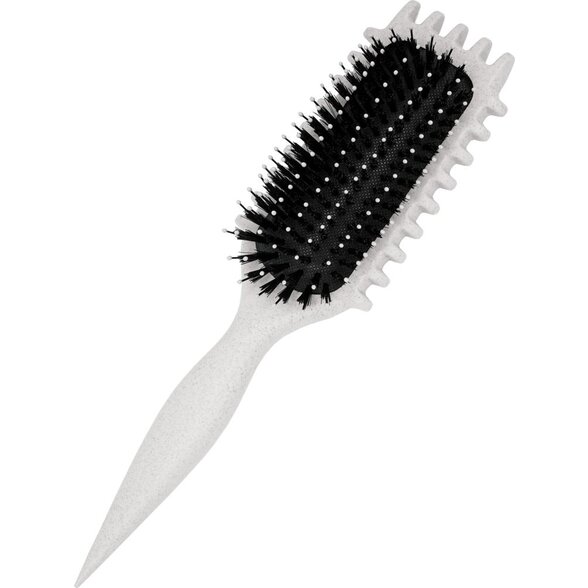• Combinație de peri de mistreț și nailon – perii de mistres transportă uleiurile naturale pe toată lungimea părului și îi conferă strălucire, iar perii din nailon pătrund în firele mai dense, împiedicând încurcarea și conferind părului catifelare. Această combinație este ideală pentru bucle sănătoase, suple și frumos definite.
