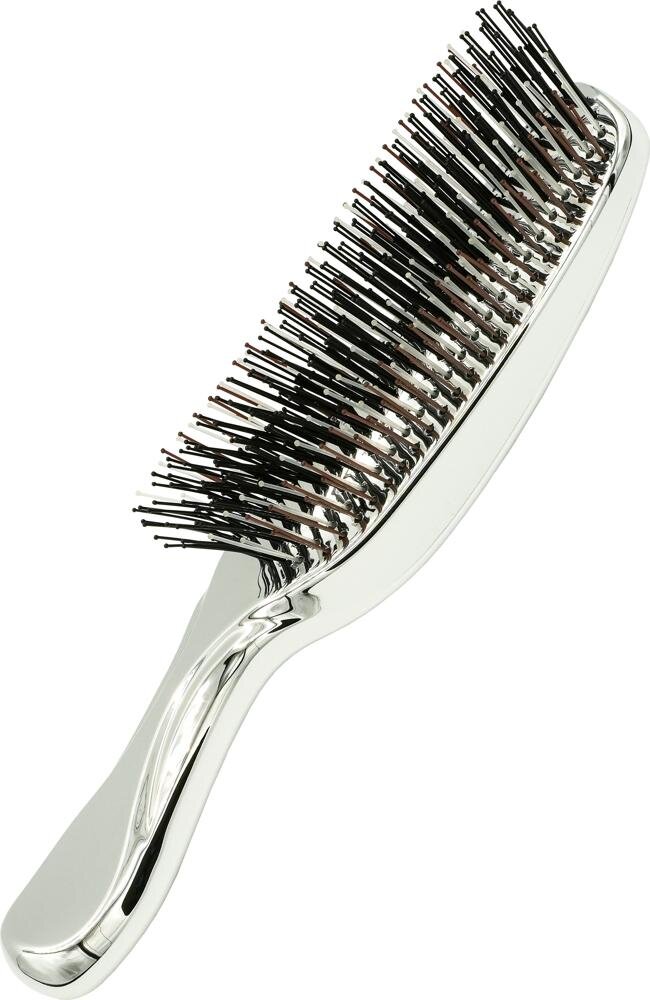 Finisaj argintiu lucios Silver nu este doar un element estetic. Reprezintă un simbol modern al eleganței și profesionalismului, care face din această perie un accesoriu elegant pentru orice trusă cosmetică. În baie arată minimalist și luxos, pe masa de lucru a coaforului, reprezentativ și profesional.