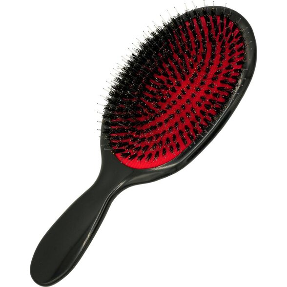 • Combinație de peri de mistreț și nailon – perii de mistres împrăștie uleiurile naturale pe toată lungimea părului, sporind strălucirea naturală, în timp ce perii din nailon asigură un pieptănat eficient și rapid.