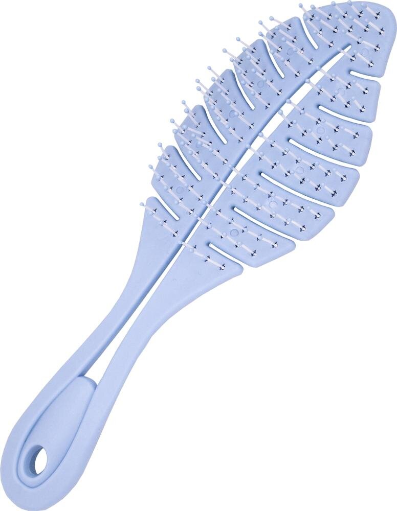 Peria este concepută în formă de frunză – designul său elegant curbat nu este doar atrăgător din punct de vedere vizual, ci și funcțional. Forma curbată se adaptează perfect la scalp, astfel încât părul este distribuit uniform în timpul pieptănării și aerul din uscător circulă mai bine prin orificiile de ventilație. Această abordare inovatoare permite uscarea mai rapidă și mai blândă a părului, economisind timp și protejând firul de păr.