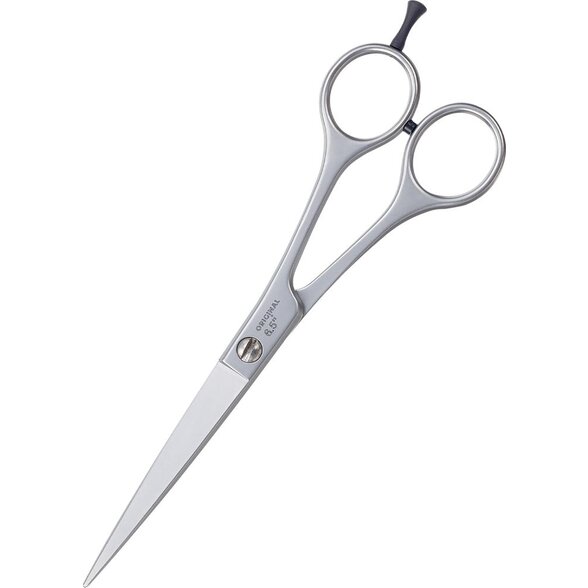 Klasické rovné nožničky z európskej kovanej oceli. Jedna mikro-zúbkovaná čepeľ a jedna rovná. Temper...