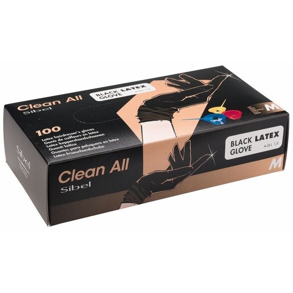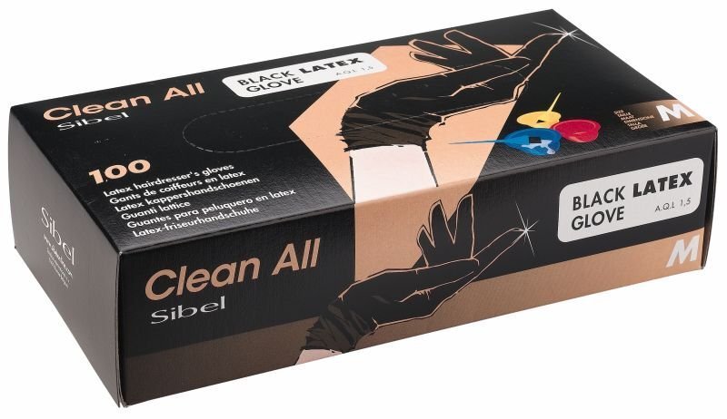 Sibel 100ks čierne latexové rukavice M, stredne veľké